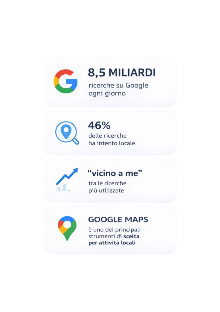Ogni giorno miliardi di persone cercano servizi, negozi e attività locali su Google e Google Maps.
